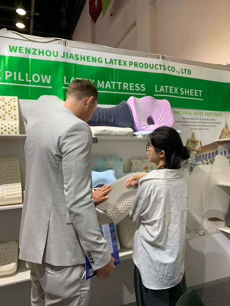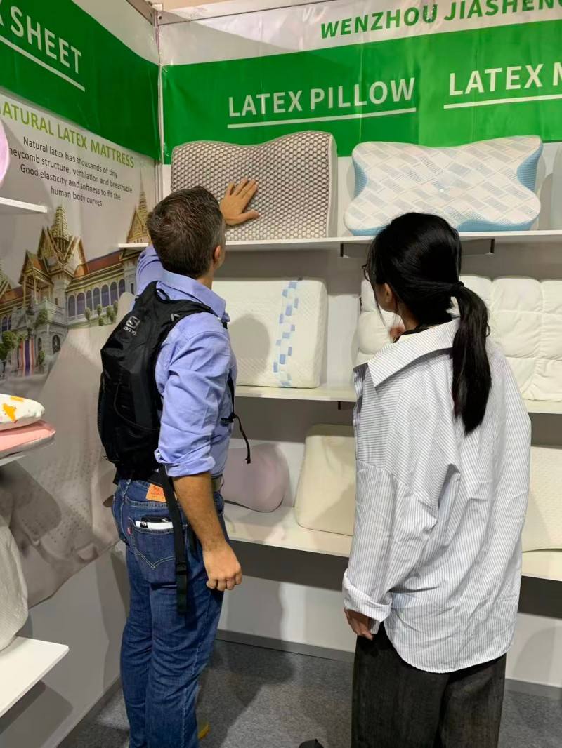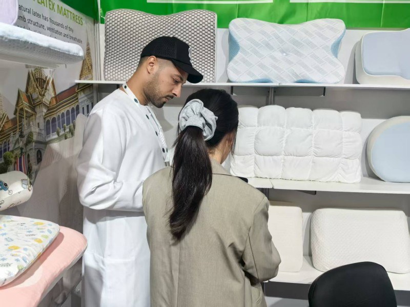 En aquesta Dubai Sleep Exhibition, tenim l'honor de mostrar els nostres coixins centrats en el son a visitants d'arreu del món. Ens dediquem a presentar dos dels coixins més venuts del mercat: elcoixí de làtex naturali el material intel·ligent moderncoixí d'escuma de memòria. Les propietats antial·lèrgiques i de rebot ràpid del làtex són molt afavorides pels entusiastes del làtex. Mentrestant, l'ajust final de l'escuma de memòria pot proporcionar un son profund. La nostra comunicació profunda amb els clients al lloc ens va fer sentir la seva recerca de coixins. Creiem fermament que oferir opcions personalitzades per a diferents hàbits de son és la clau per aconseguir un son de qualitat.